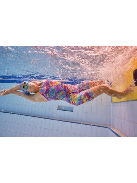 The AMANZI Euphoria Kneelength is made from Armor chlorine resistant fabric making it ideal as a training swimsuit and as an entry level racing swimsuit. The kneelength has been engineered to fit the needs of competitive and active swimmers, as well as triathletes and open water swimmers. The wide shoulder straps and back band are placed between the shoulder blades allowing maximum freedom and ease of movement whilst swimming. They also provide added support to the bust area. The wide open back follows the natural contours of the body providing an ergonomic fit and superior comfort.