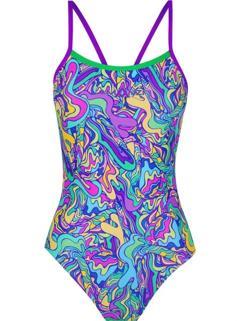 The AMANZI Shimmer Pop Proback One Piece is an all purpose training swimsuit engineered to fit the needs of both competitive and active swimmers. The thin shoulder straps are designed to reduce the weight placed on the neck and shoulder muscles and allow for maximum freedom and ease of movement whilst swimming. The wide open back follows the natural contours of the body providing an ergonomic fit and superior comfort. The medium cut leg is suitable for all figures.Â