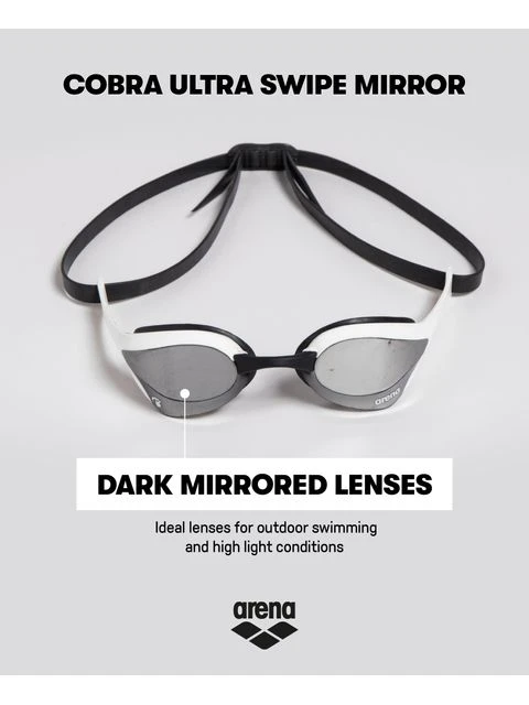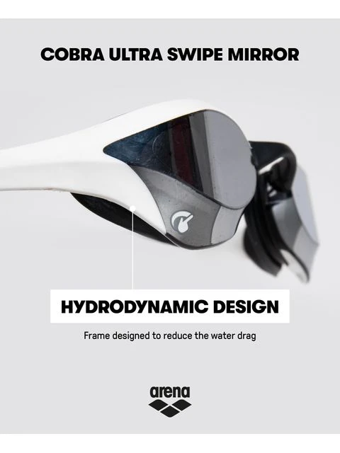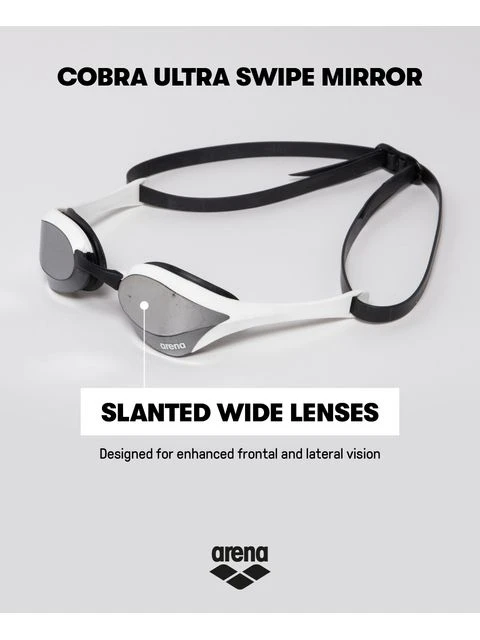 The Cobra Ultra Swipe Mirror Goggles have a hydrodynamic design with extended temples merging into the straps for maximum stability. They also have a wide vision lens and provide maximum comfort while swimming at top speeds.