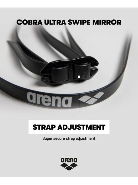 The ground breaking new Anti-Fog Swipe Technology solves the problem of goggles that fog up. The Cobra’s exisitng anti-fog treatment is already one of the best, but with the Swipe Technology Arena has made the Cobra Ultras even better. With just a single swipe of the finger, the Swipe Ant-fog can be reactivated, extending the anti-fog protection up to 10 tmes longer. When goggles become foggy, gently wipe the inner lenses with your fingertip while the goggles are in the water and enjoy clear vision for longer.