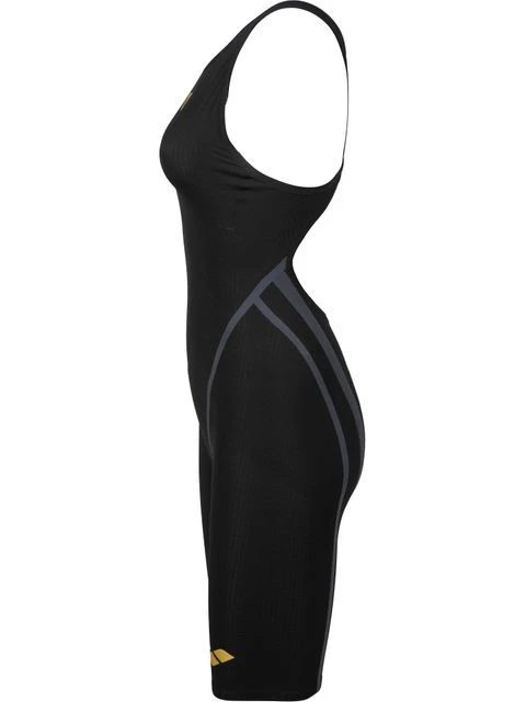 Feel the power in the Arena Powerskin Carbon Core FX Kneelength – Black & Gold. This FINA approved racing swimsuit features the latest carbon cage fabric, which has horizontal and vertical grids that surround specific muscle groups for very strong and durable all over muscle compression, giving you a locked in feel.