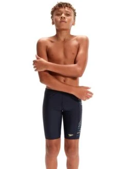 The Speedo Jammers – Medley Logo Navy/Spritz is a sporty style featuring a subtle kinetic wave print design and an internal drawcord which allows young swimmers to adjust the fit. The jammer includes a front lined panel for added comfort and modesty. The Speedo ECO EnduraFlex fabric offers higher chlorine resistance than standard swimwear fabrics and fits like new for longer with CREORA® HighClo™. Made from 100% recycled waste fabric, so its better for the environment too.
