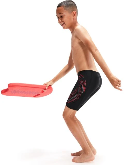 The Speedo Jammers – Red/Dapple Grey is everything your child needs for a great swim. Featuring a red and grey ‘cresting wave’ plastisol graphic, this sleek-looking black Jammer is stylish and understated. Ideal for training, lessons and fun in the pool, it’s lined at the front for comfort and modesty and includes an internal drawcord to allow young swimmers to adjust the fit. Providing higher chlorine resistance than standard swimwear fabrics, the jammer offers excellent shape retention and fits like new for longer with CREORA® HighClo™. If you’re looking for great eco-credentials, it’s got those, too: the exclusive Eco EnduraFlex fabric is made from 100% recycled pre-consumer waste, such as fabric waste from factories.