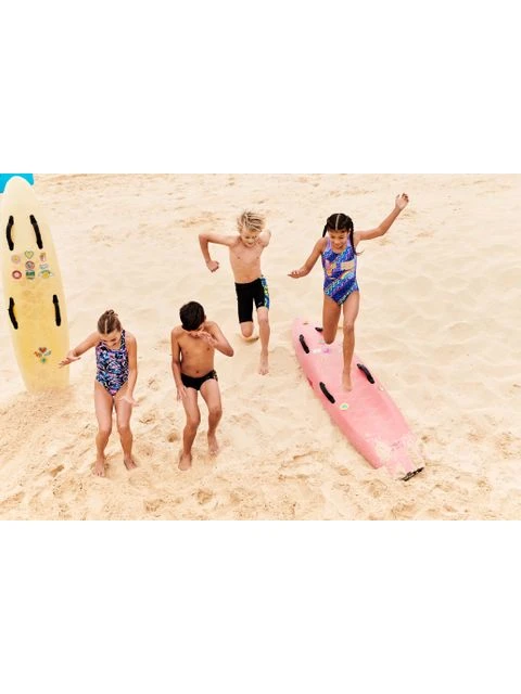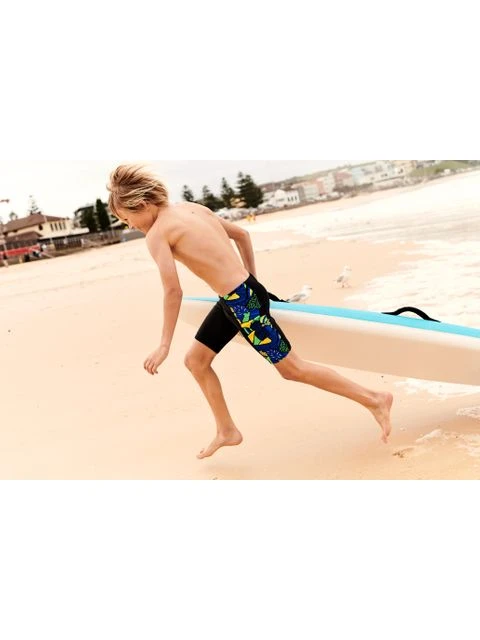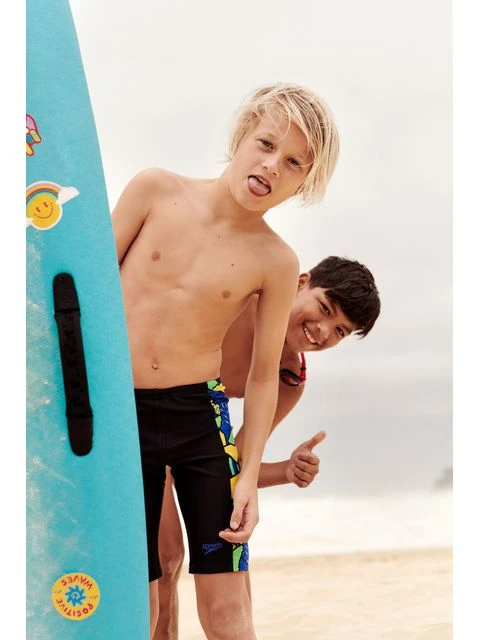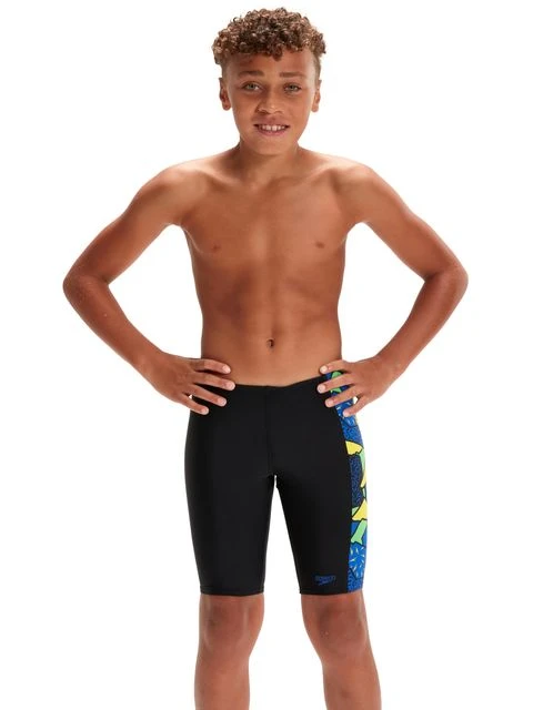 The Speedo Panel Jammers – Flame/Yellow/Green features side panels of the high-energy abstract print in bright yellow, green and blue. Lined at the front for comfort and modesty, the jammer includes an internal drawcord to allow your child to achieve a secure and comfortable fit. Providing higher chlorine resistance than standard swimwear fabrics, it offers excellent shape retention and fits like new for longer with CREORA® HighClo. If you’re looking for great eco-credentials, it’s got those, too: the exclusive Eco EnduraFlex fabric is made from 100% recycled pre-consumer waste, such as fabric waste from factories.