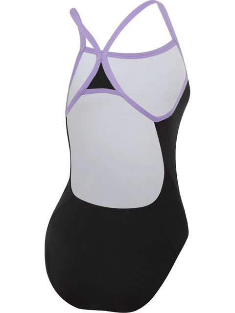 The Speedo Turnback One Piece – HyperBoom/Miami Lilac is a standout style. The black Boom Logo Turnback swimsuit features the classic Speedo Boom logo and contrasting lilac straps. Perfect for swimmers seeking maximum flexibility during training, the turnback style includes thin straps for unrestricted shoulder movement and a high leg for flexibility. Offering 100% chlorine resistance in the Speedo ECO Endurance + fabric.
