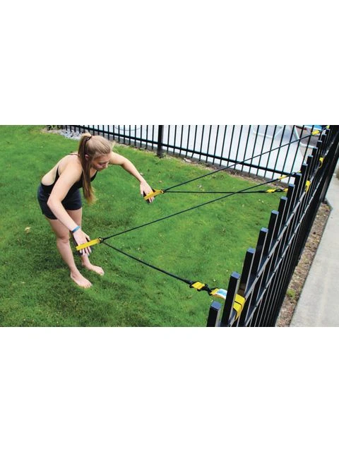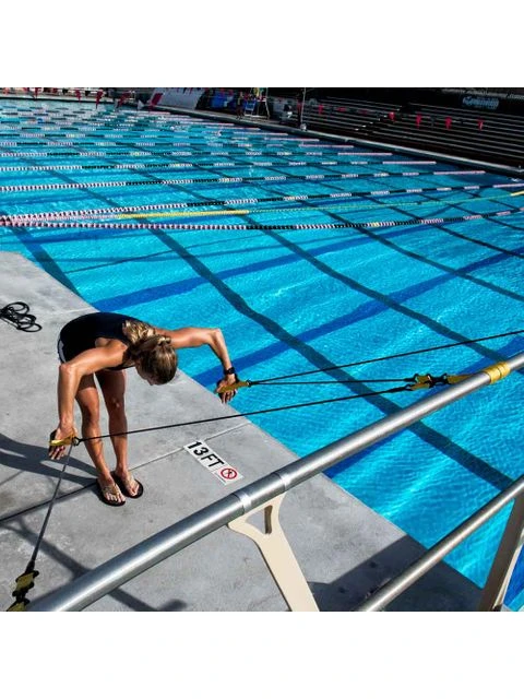 The StrechCordz Breastroke Machine S108 strengthens muscles and increases power through outward and inward sweep exercises. Attaches to a diving board, fence, rail or any stationary object. Swimmers use StrechCordz resistance exercise products to improve stroke, strength and endurance.