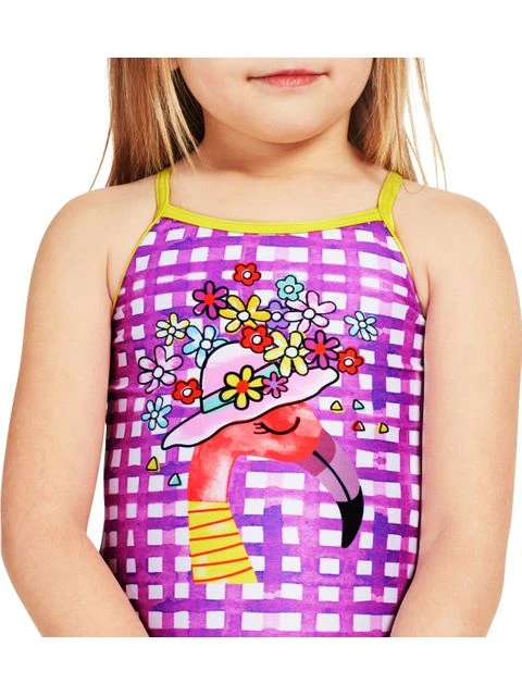 The Zoggs Crossback One Piece – Flamingo with its cute flamingo and check print, in crossback style will a hit this summer. Your little one will be secure in the water with the high back and crossback straps, plus it is easy to get in to and out of the swimsuit. Featuring Zoggs highly chlorine resistant, sustainable fabrication Ecolast™,made with recycled plastic bottles – the Flamingo Crossback One Piece not only looks good, its good for the environment.